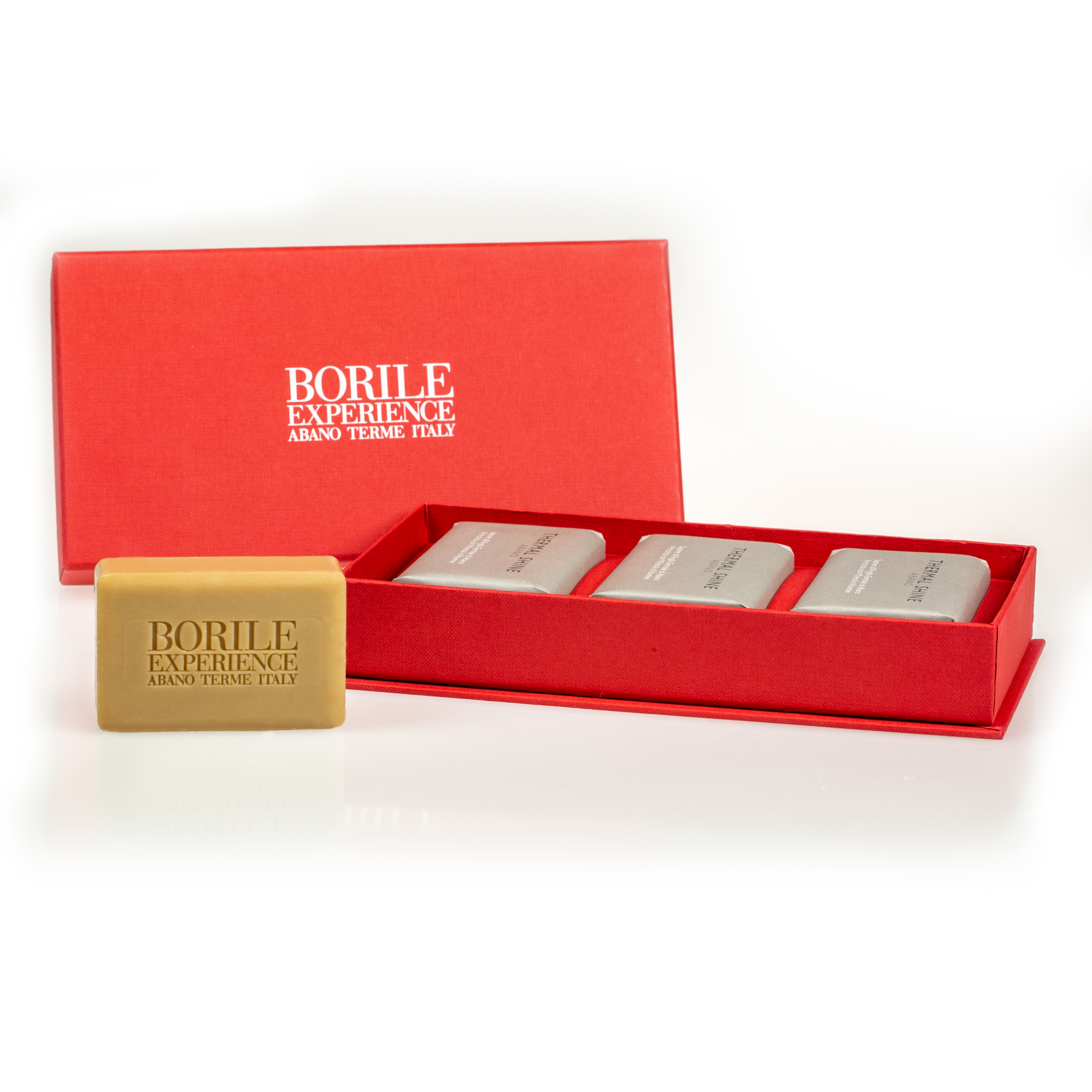Box with 3 soaps. Each Soap is formulated with Clay and Thermal Mud, to cleanse the skin deep down, leaving it feeling pleasantly smooth. After cleansing with the soap, we recommend hydrating the skin with