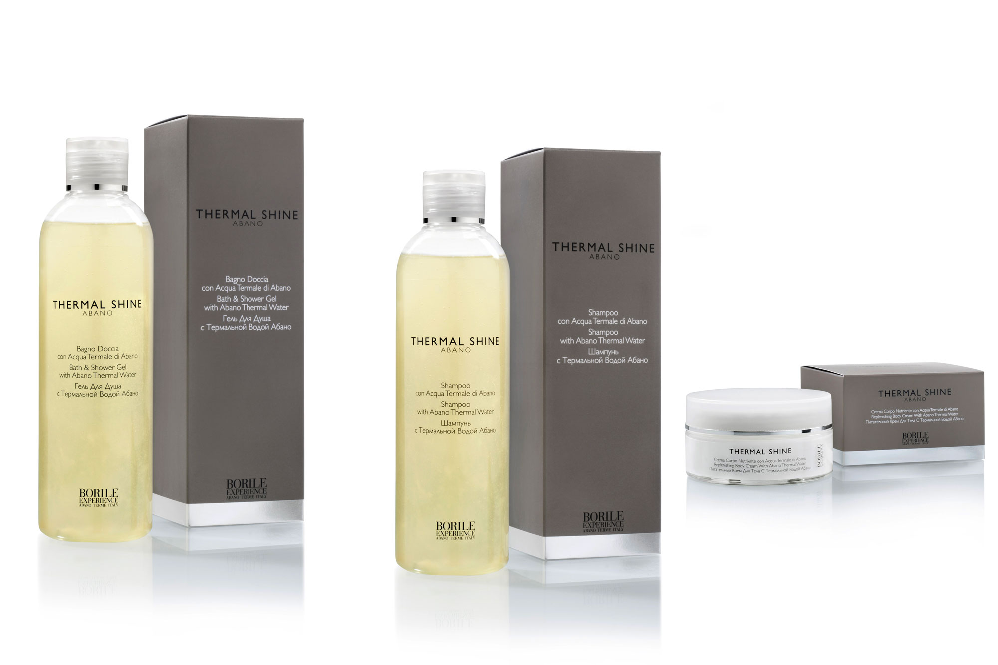 The face and body cosmetic products of the Thermal Shine line are formulated using Abano Terme Thermal Water rich in its precious and natural Mineral Salts associated with natural antioxidant actives with mud and clay. These precious natural components enhance and complement the properties and effects on the epidermis, improving elasticity, radiance, hydration and nourishment.